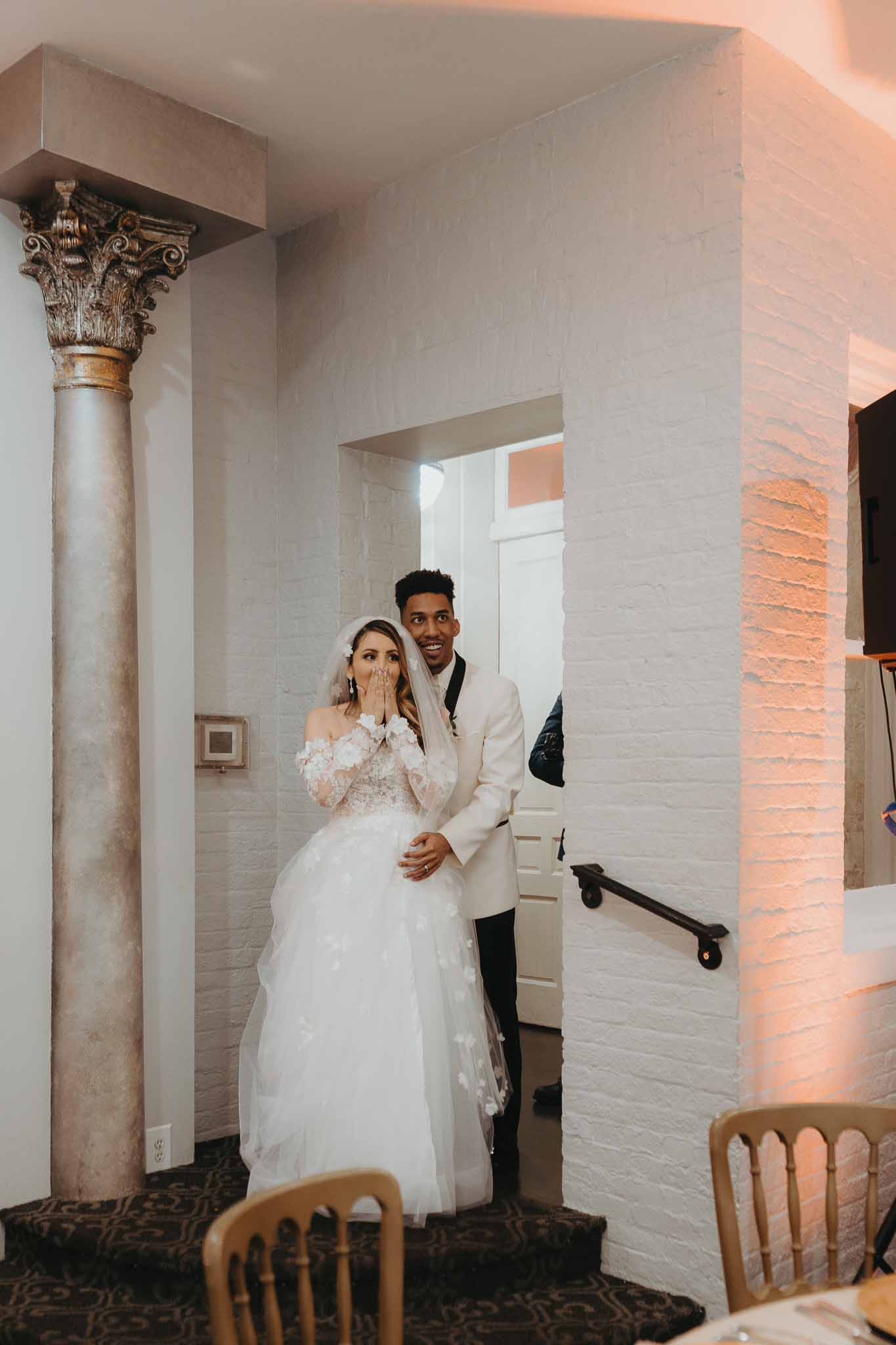 Rather than a first look, the couple chose a first touch — an emotional, quiet moment with their backs turned and hands entwined. No glances, just presence. Just love. This moment was one of the most memorable as a Ceresville Mansion wedding photographer, reminding me how powerful stillness and anticipation can be.