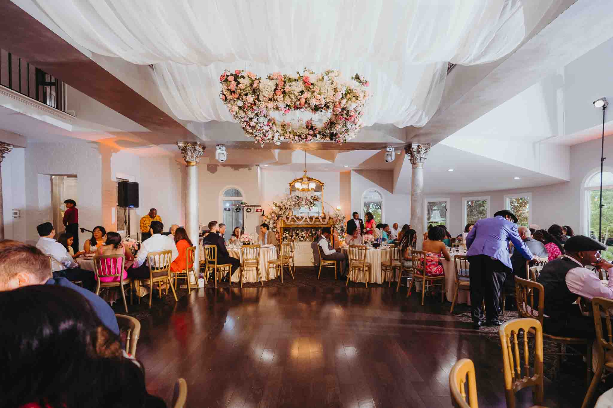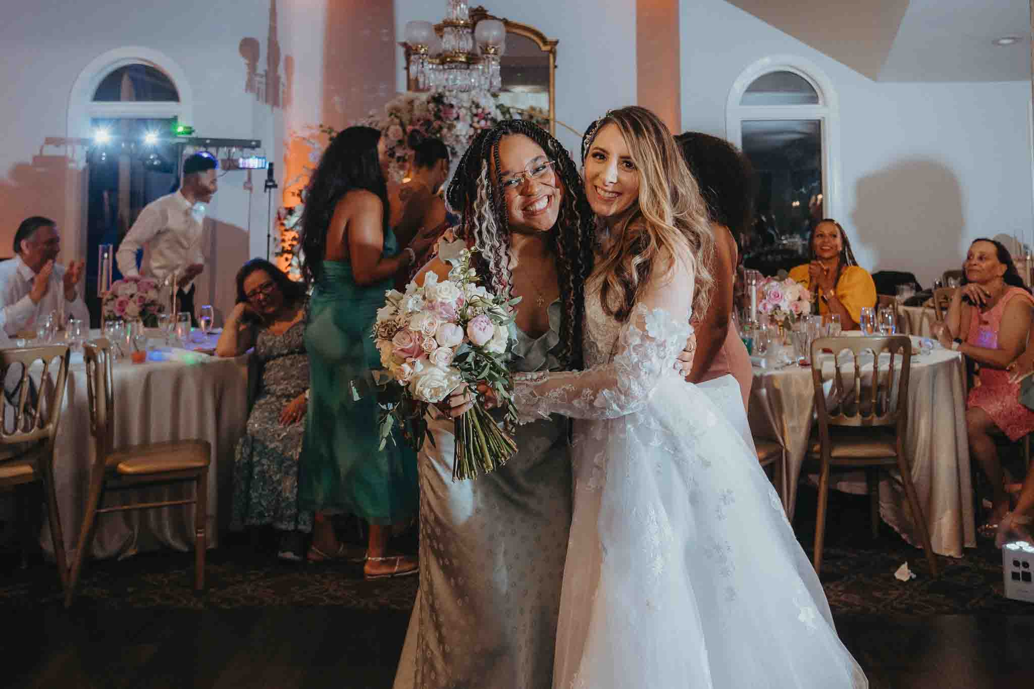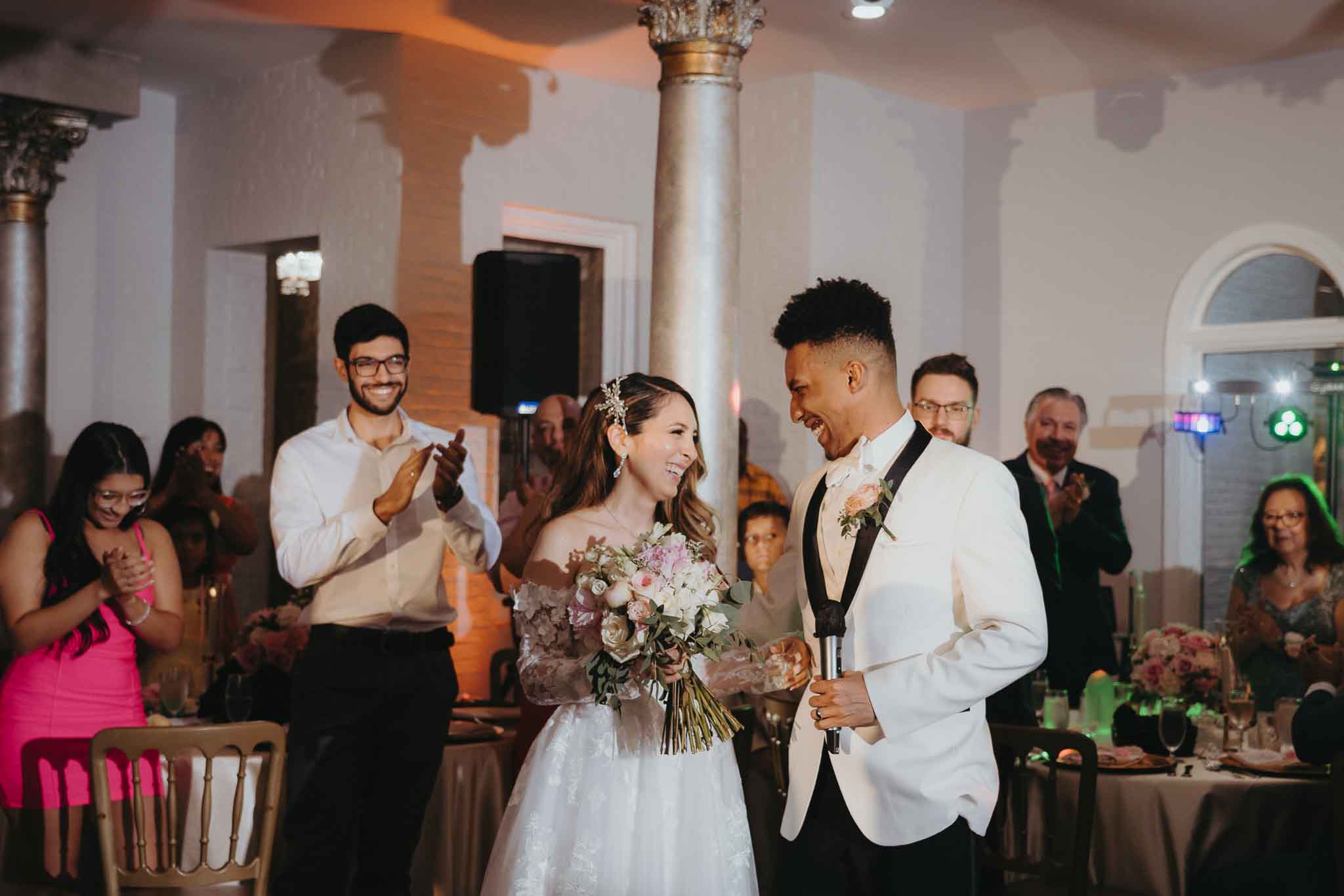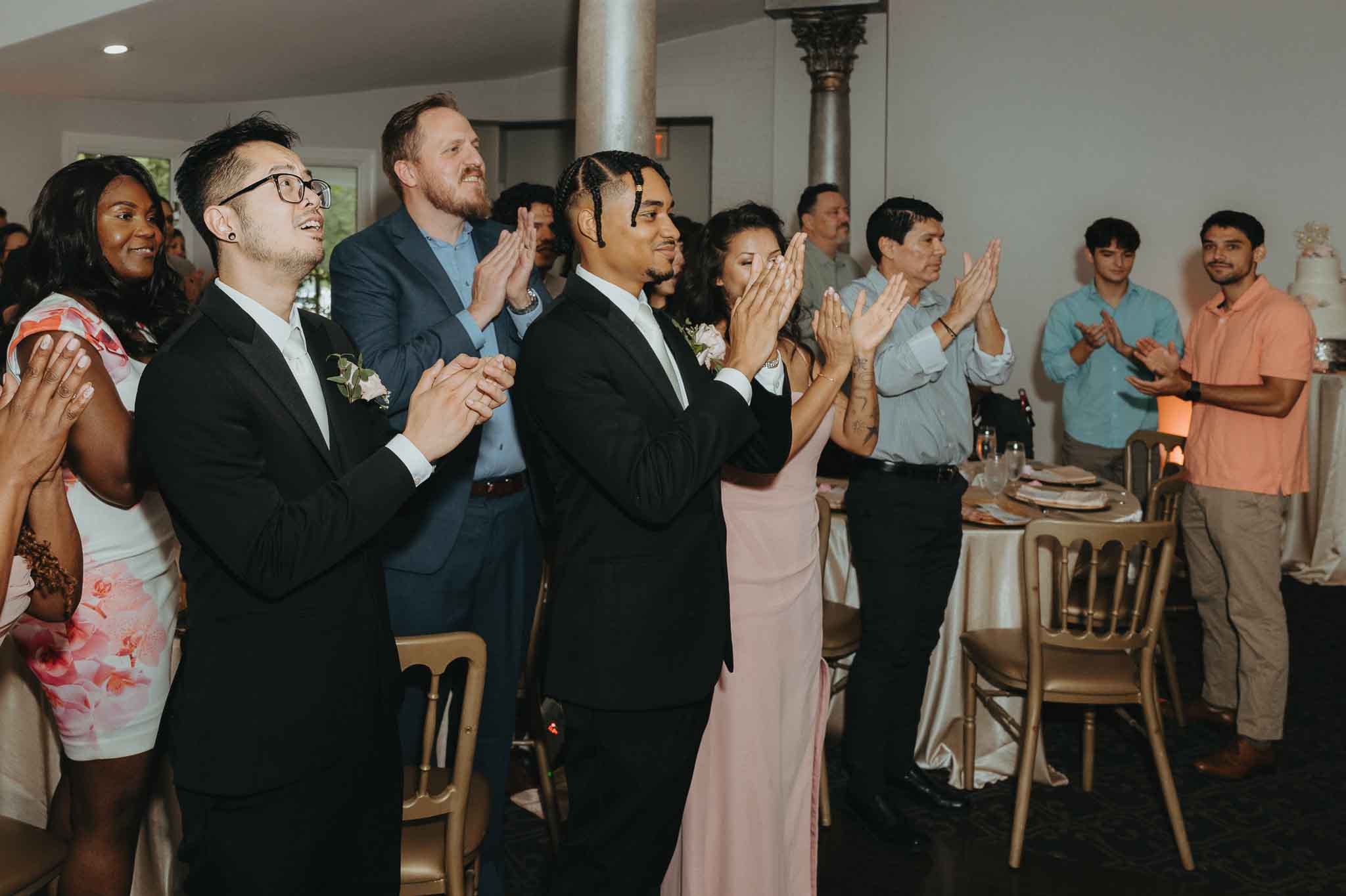 After portraits, the celebration moved to the romantic Ceresville Mansion. Elegant pink and gold accents filled the ballroom. Guests enjoyed heartfelt speeches, a surprise dance by the groom’s cousin, and high-energy Peruvian dance performances that lit up the room