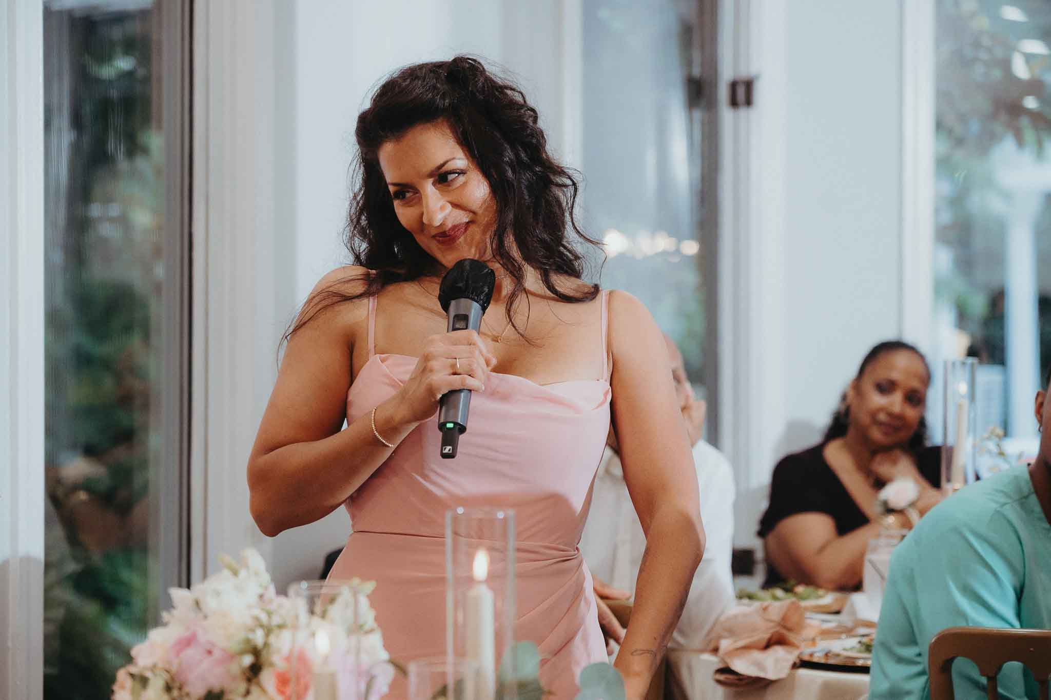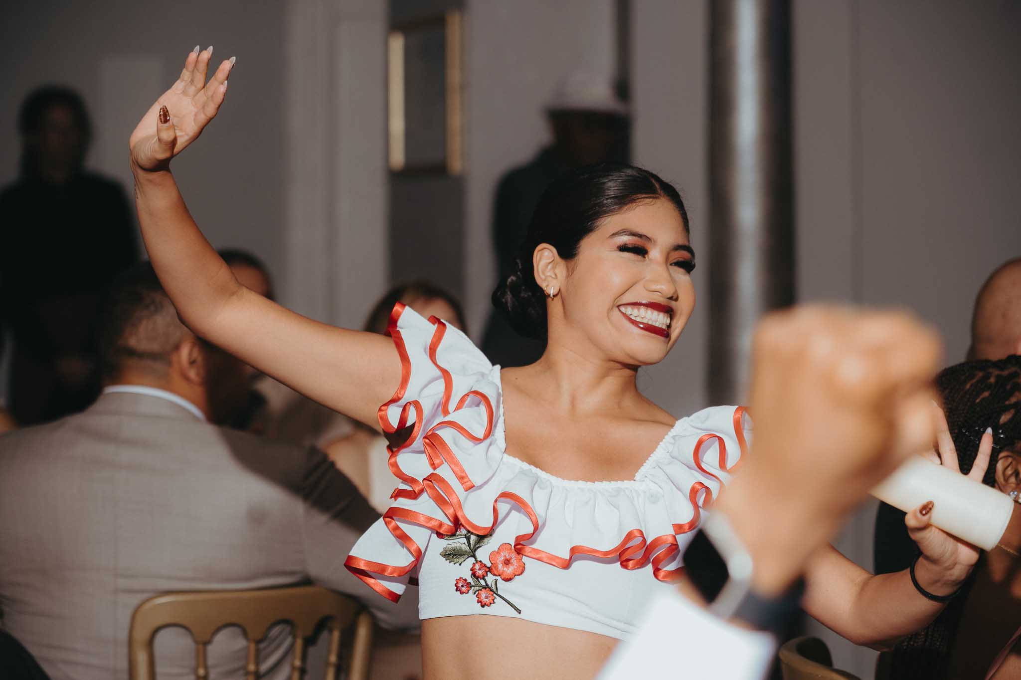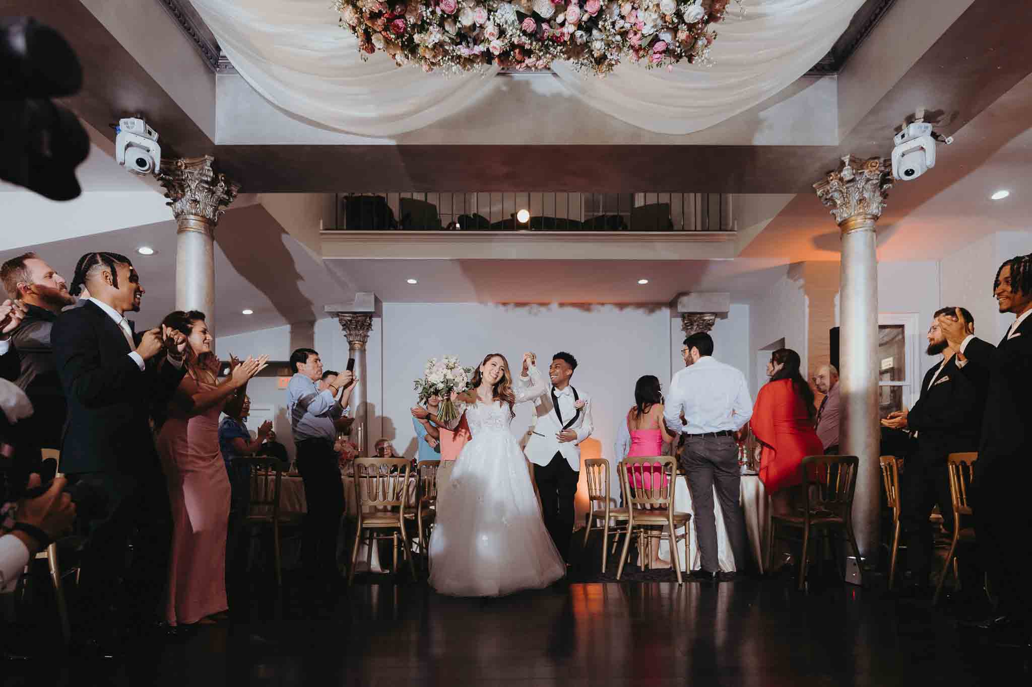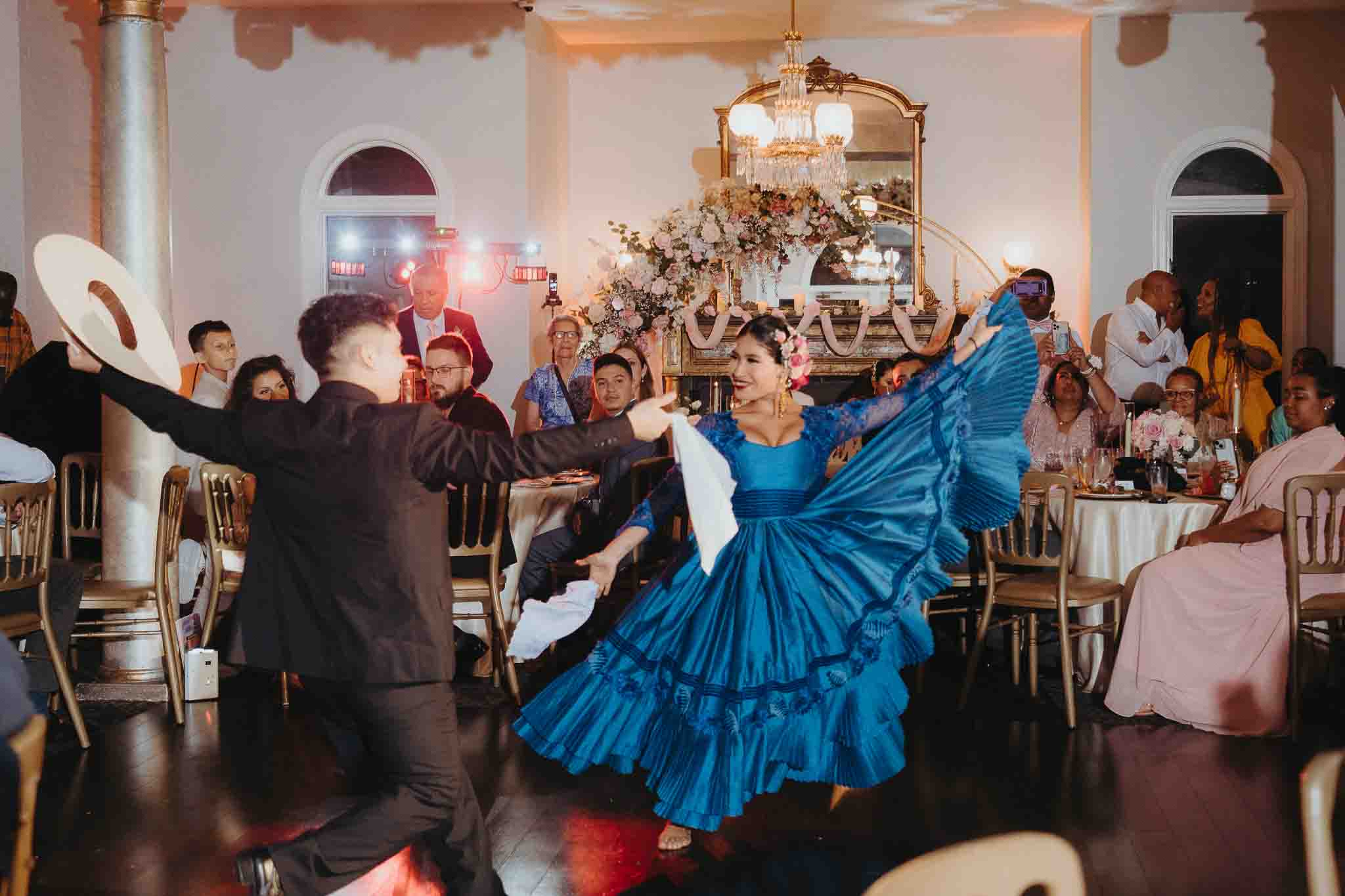 After portraits, the celebration moved to the romantic Ceresville Mansion. Elegant pink and gold accents filled the ballroom. Guests enjoyed heartfelt speeches, a surprise dance by the groom’s cousin, and high-energy Peruvian dance performances that lit up the room